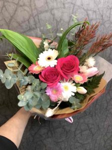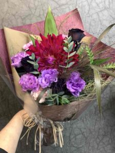 | ブーケタイプ お花がぎゅっと詰まったフォルムの丸い花束です。 背丈が短いので持ち運びに便利で、大きい花瓶がなくても大丈夫。 少ないご予算でもおしゃれな花束が出来上がるので当店のおすすめです。 | ||